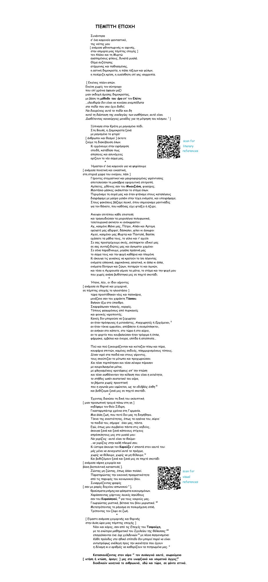 στην ισημερία μιας πέμπτης εποχής ]